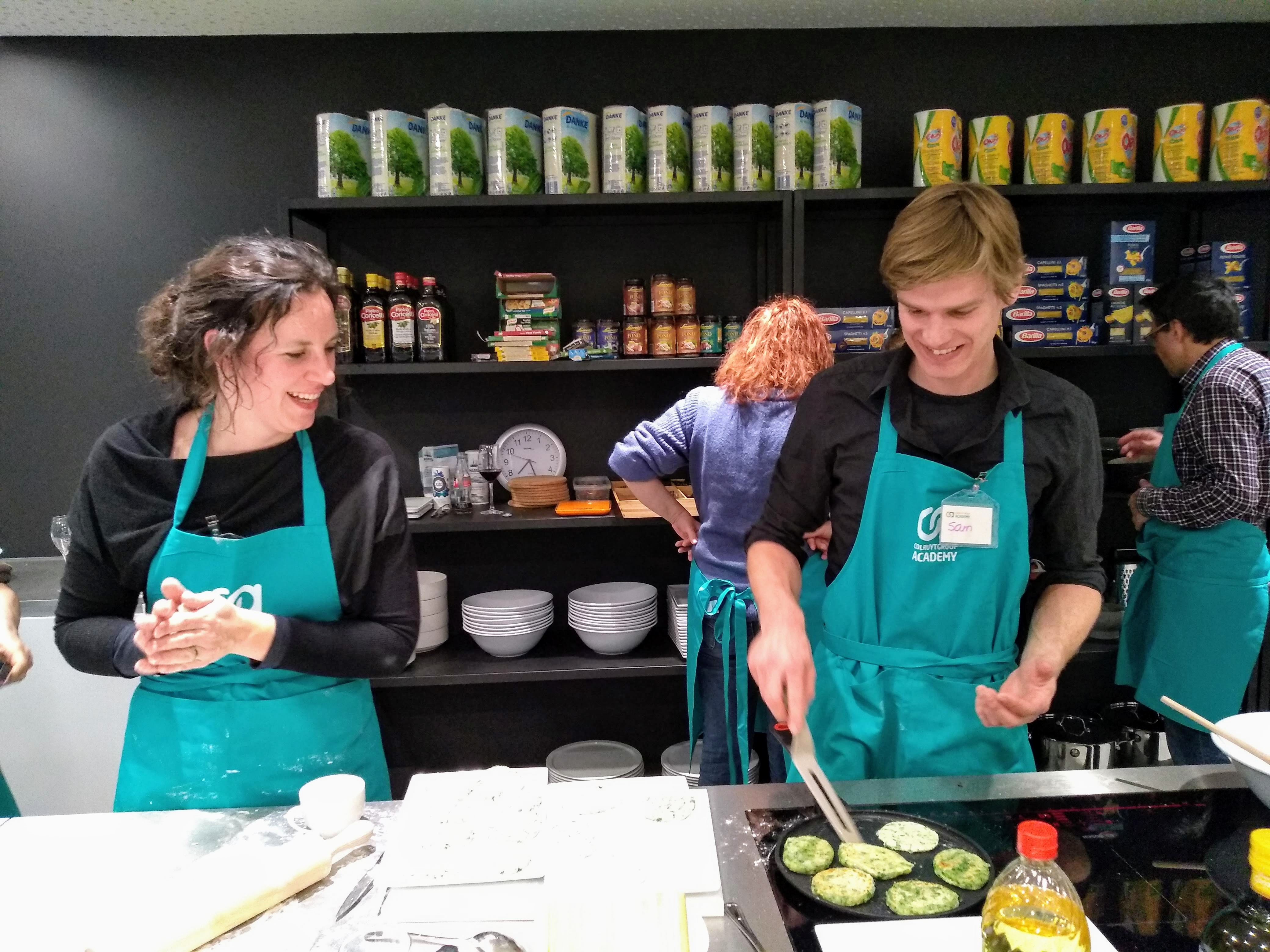 En het was een schot in de roos. Super lekkere hapjes en heel goede lesgeefster. En we deden het als team helemaal niet slecht, vond ik. Een geoliede machine 😀 .
